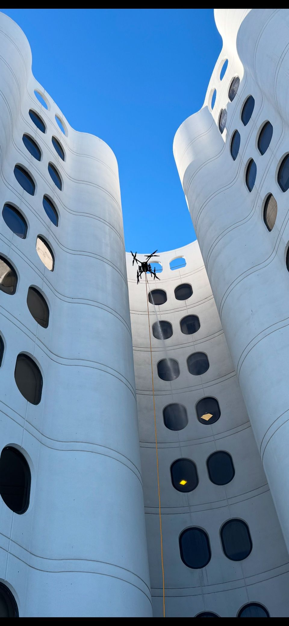 The patented, award-winning Apellix drones represent a significant advancement in building maintenance technology, offering a faster, cheaper, and safer method of cleaning, painting, and non-destructive testing.